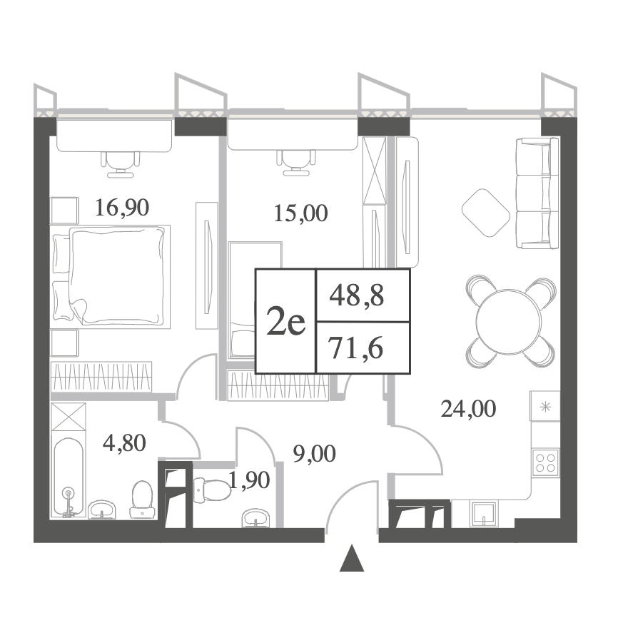 Продажа 2-комнатной квартиры площадью 71,6 кв.м.